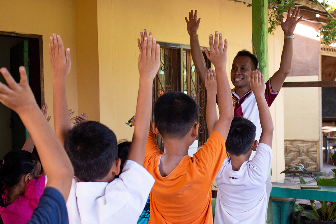 Femar, 35, a Catch-Up Clubs volunteer, supports learners in Sarangani who are struggling with reading through play and social and emotional learning. He says he believes that the success of one child is the success of the whole community. Archive/ Save the Children